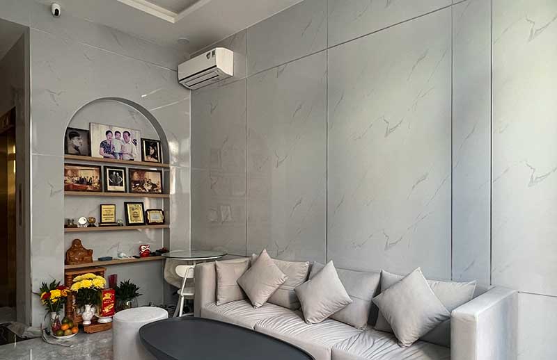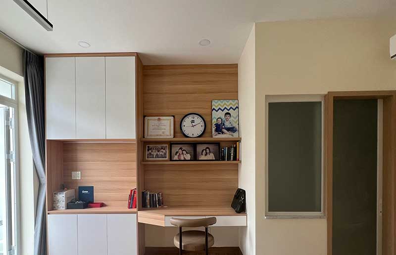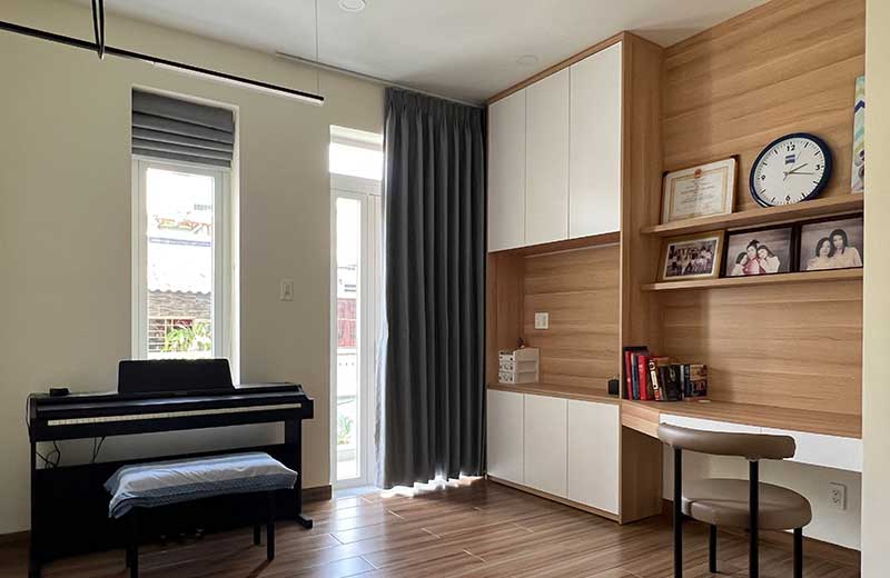 Công trình thi công nhà phố Quận 10 gồm có 4 tầng với nhiều hạng mục nội thất. Chất liệu chủ đạo cho ngôi nhà là gỗ công nghiệp vân gỗ kết hợp với sắc trắng tinh tế. Lối thiết kế hiện đại, thông minh, tận dụng tốt không gian ngôi nhà được gia chủ vô cùng yêu thích. Nội thất trong các phòng chức năng luôn đảm bảo phục vụ tốt các nhu cầu trong sinh hoạt, đồng thời tạo nên không gian ấm cúng và tiện nghi nhất cho người dùng.
